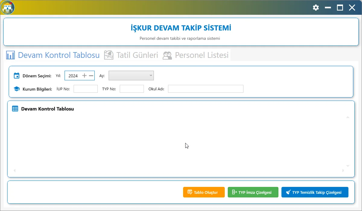 İŞKUR Devam Takip Uygulaması, TYP ve İUP programlarına katılan personelin devam durumunu kolayca takip etmenizi ve raporlamanızı sağlayan pratik bir çözümdür.